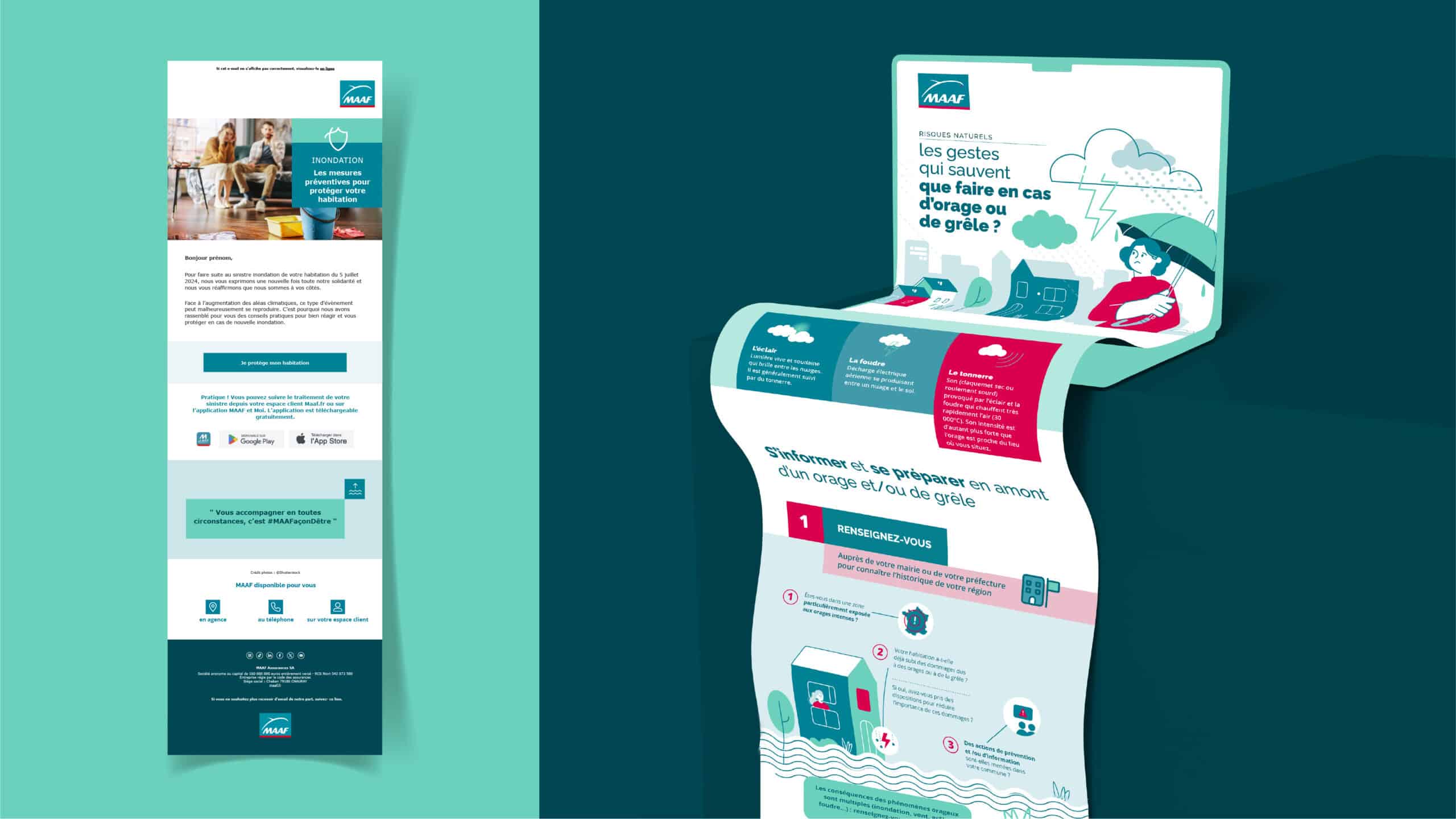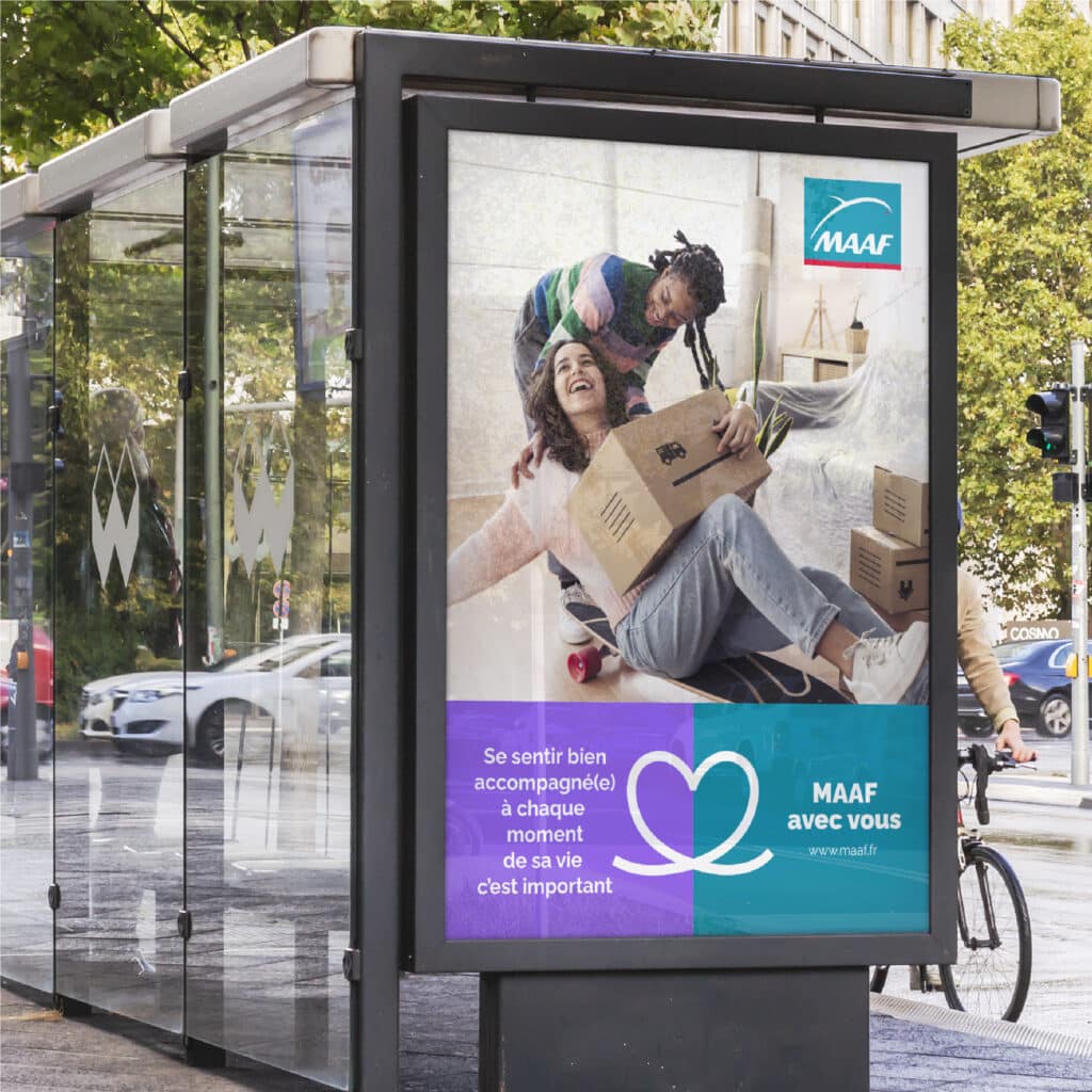 La charte graphique de MAAF évolue pour accompagner une dynamique de modernisation et mieux répondre aux nouveaux usages digitaux. Elle s’inscrit dans la continuité de la plateforme de marque, désormais centrée sur une relation client plus chaleureuse. Cette refonte permet aussi d’unifier l’ensemble des prises de parole et de renforcer la cohérence de l’expérience de marque, quel que soit le support.